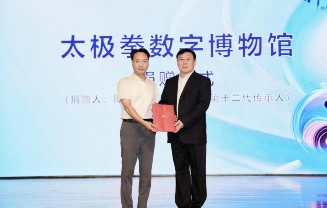 太极拳数字博物馆捐赠仪式上,河南理工大学体育学院院长刘红波向陈沛林老师颁发捐赠证书,对其将多年来收集的文献资料、历史实物慷慨捐赠给太极拳数字博物馆表示诚挚感谢。此次捐赠不仅丰富了馆藏资源,也为太极拳文化的数字化保存、研究与传承提供了重要资料支持。