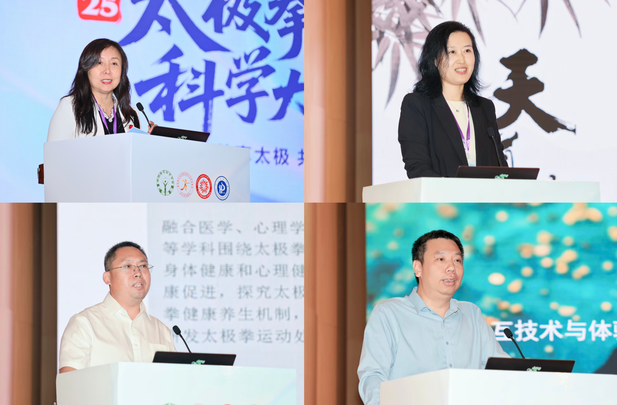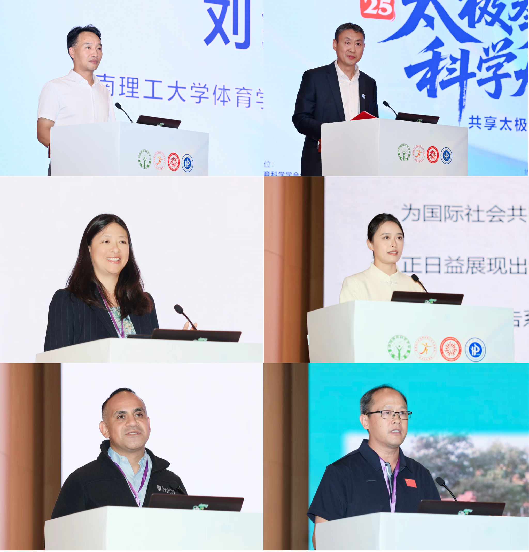 上午的大会主旨报告报告人为Gloria Yeh、朱宏燕、Samuel Montalvo、吉灿忠,分别从太极拳健康促进和前沿研究等方向作专题报告。Gloria Yeh教授在《Taijiquan as a Mind-Body Movement Therapy for Whole Person Health》中指出,太极拳作为一种身心运动疗法,能够有效改善生理机能、增强自我觉察能力并促进社会互动,从而促进个人整体健康。朱宏燕通过《科学与人文:国际太极拳研究进展》,系统梳理了太极拳科学研究的前沿进展,为相关科研与实践提供理论参考和发展路径。Samuel Montalvo教授的《Science of Wushu & Human Performance: From Molecules to Movement》,系统阐述了从分子机制到运动表现的跨学科研究,旨在通过科学监测与训练优化提升太极拳运动员的赛场表现与整体健康水平。吉灿忠教授以《太极拳文化生态圈的划分及其理路应答》为题,深刻阐明太极拳文化生态圈层的区划逻辑、表现特征及发展理路,为太极拳文化传承传播提供理论支撑和实践指引。