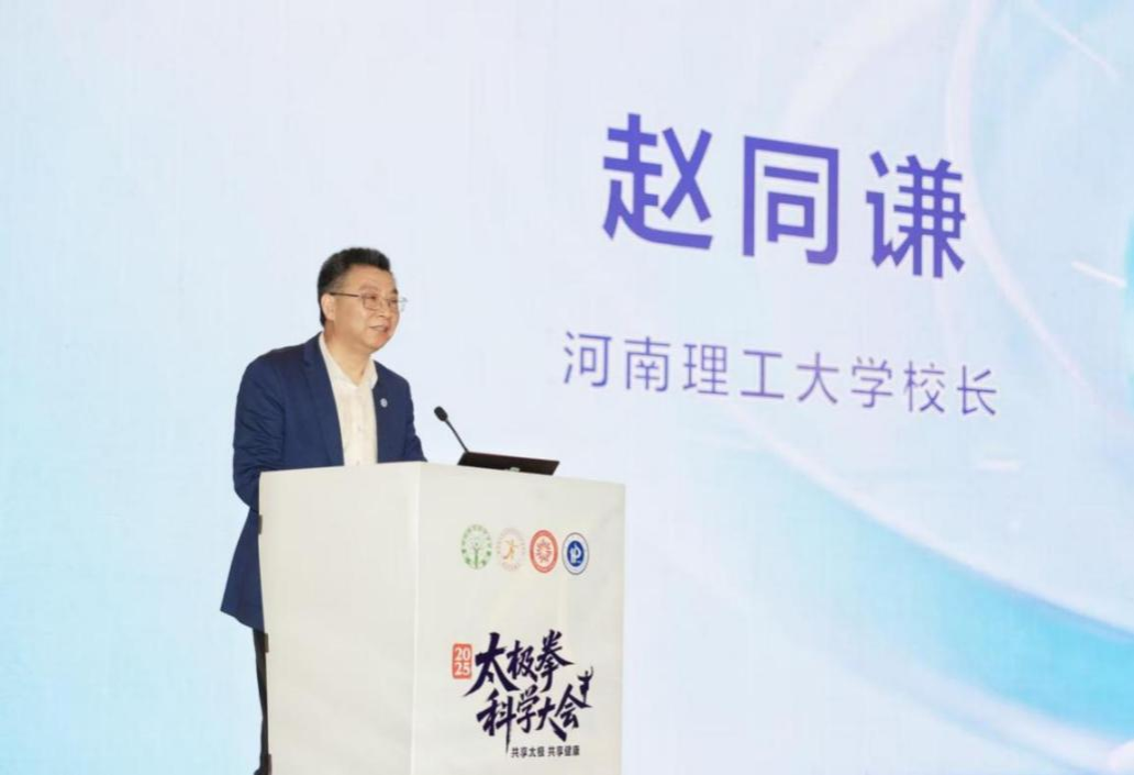 太极拳展演结束后,河南理工大学校长赵同谦致欢迎辞。他表示,作为人类非物质文化遗产的太极拳不仅是中华文明的重要符号标识,更是中华民族献给世界人民的珍贵礼物。近年来,河南省和焦作市把太极拳作为优势文化品牌重点建设,河南理工大学依托地处“太极拳传承重镇”的地缘优势,成立了太极拳学院、开设了太极拳课程、建立了太极文化研究中心,形成了以太极拳为核心的体育特色研究方向和团队。本次大会既聚焦于中外太极拳理论的前沿探讨,也致力于推动太极拳的科学化发展。希望与会专家、学者通过深入的交流与合作,共同为推进太极拳理论研究和文化传播作出更大贡献。