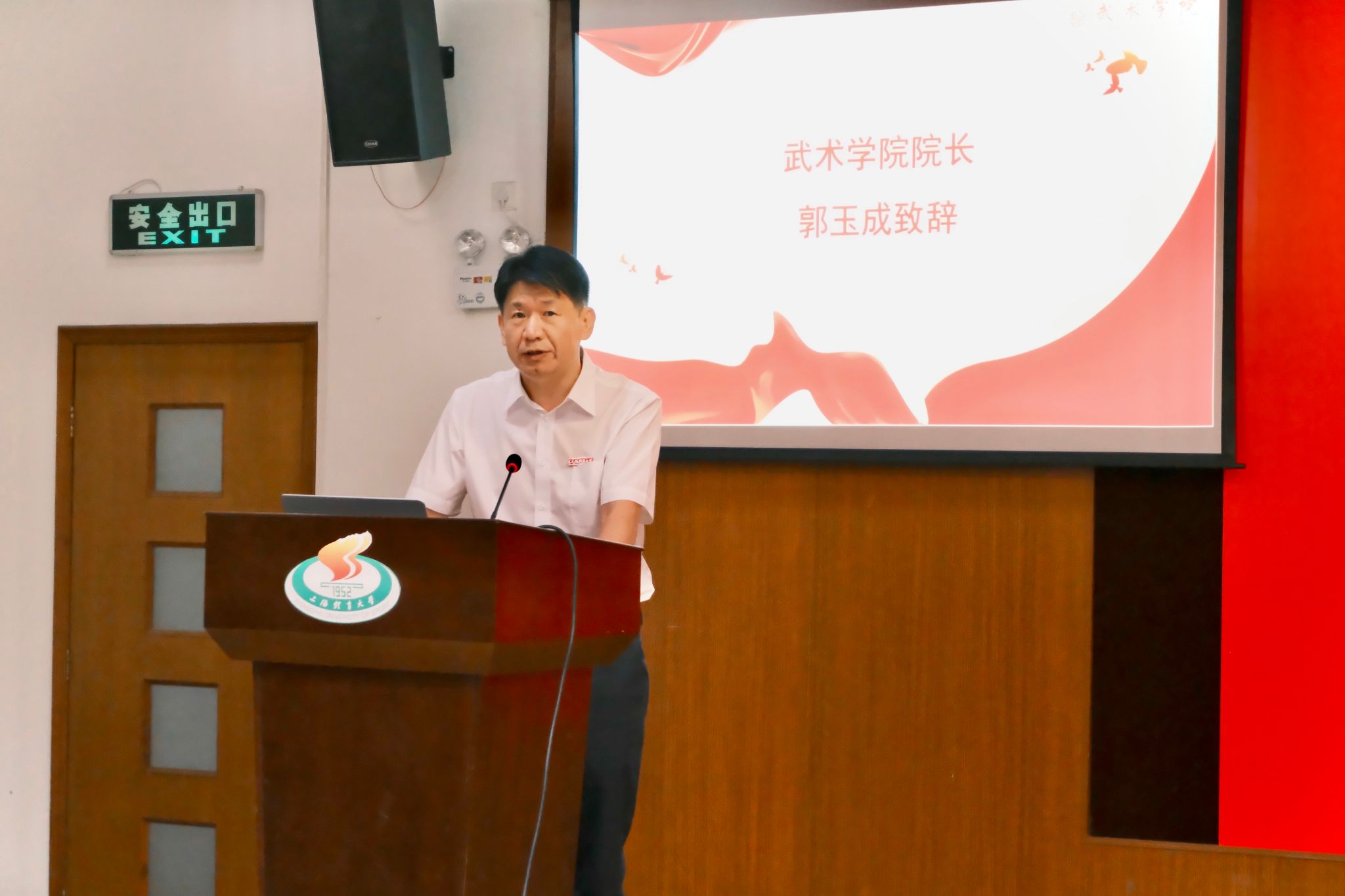 全讯白菜网党委副书记、院长郭玉成代表学院向2025级新生致以热烈欢迎,并系统介绍了学院深厚的学科积淀。他在致辞中指出,学院始终秉持“博学约礼、习武立德”理念,拥有全国首个武术硕士点和博士点,已构建起完善的本硕博一体化人才培养体系。其中,“武术与民族传统体育专业”不仅是首批国家级一流本科专业建设点,更连续五年在“软科中国大学专业排名”中位列全国第一。在学科创新成果方面,他特别提到了目前正在第二十五届中国国际工业博览会展出的我院与百度联合研发的成果“非遗武术大模型”,充分展现了传统武术在人工智能时代的创新活力。他“以青春淬炼卓越,以担当传承薪火”主题,对新生提出三点期望:一是要知行合一,练就文武兼修的过硬本领;二是要笃行不怠,锤炼百折不挠的坚韧品格;三是要守正创新,勇担弘文传武的时代使命。继承好上体武术人特有的精神、品格、风骨,以武修身、以武会友、以武载道,自觉担负起弘扬中华优秀传统文化的时代重任。